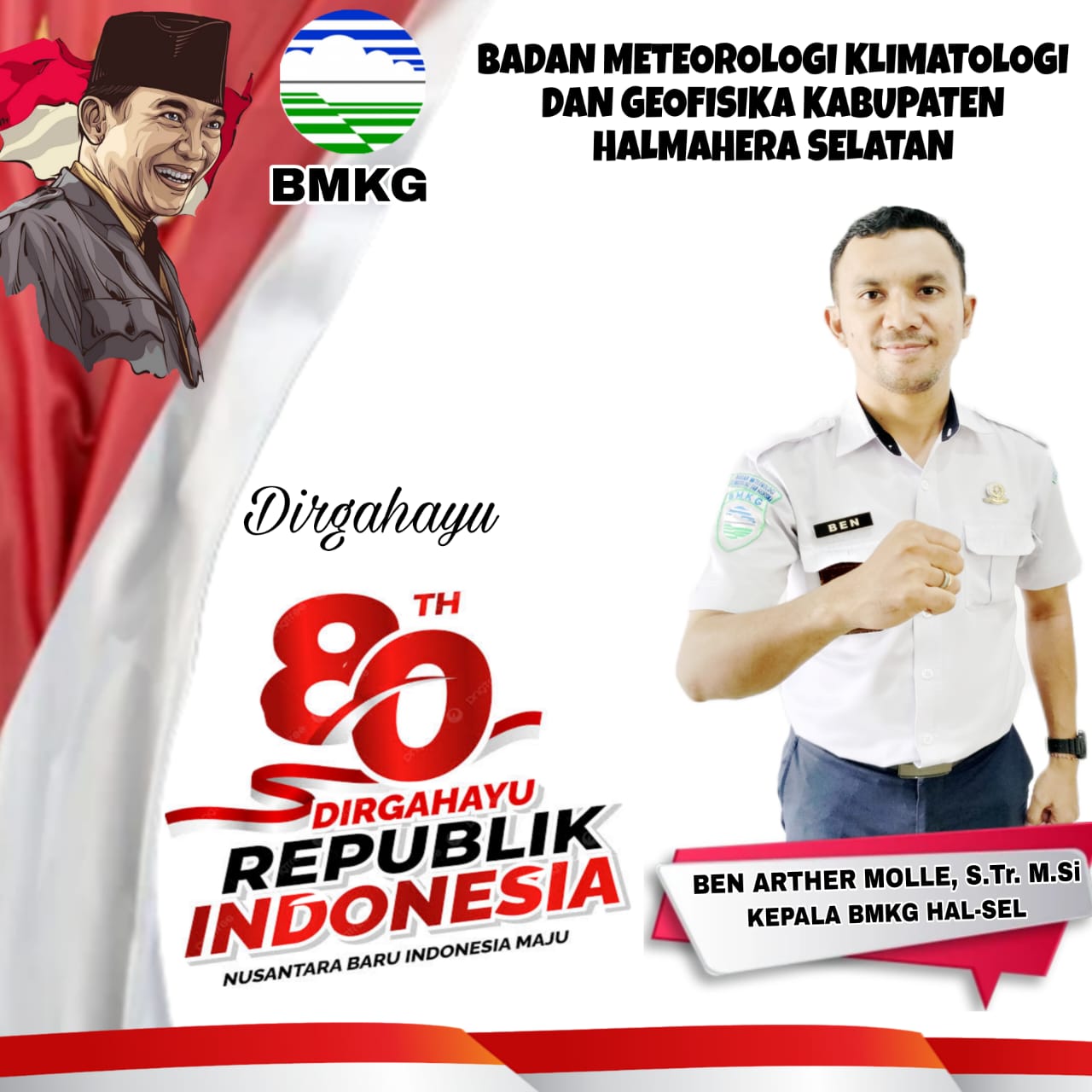 Dalam semangat memperingati Hari Ulang Tahun ke-80 Kemerdekaan Republik Indonesia, Badan Meteorologi Klimatologi dan Geofisika (BMKG) Kabupaten Halmahera Selatan turut menyampaikan ucapan selamat dan penghormatan yang setinggi-tingginya kepada seluruh rakyat Indonesia.