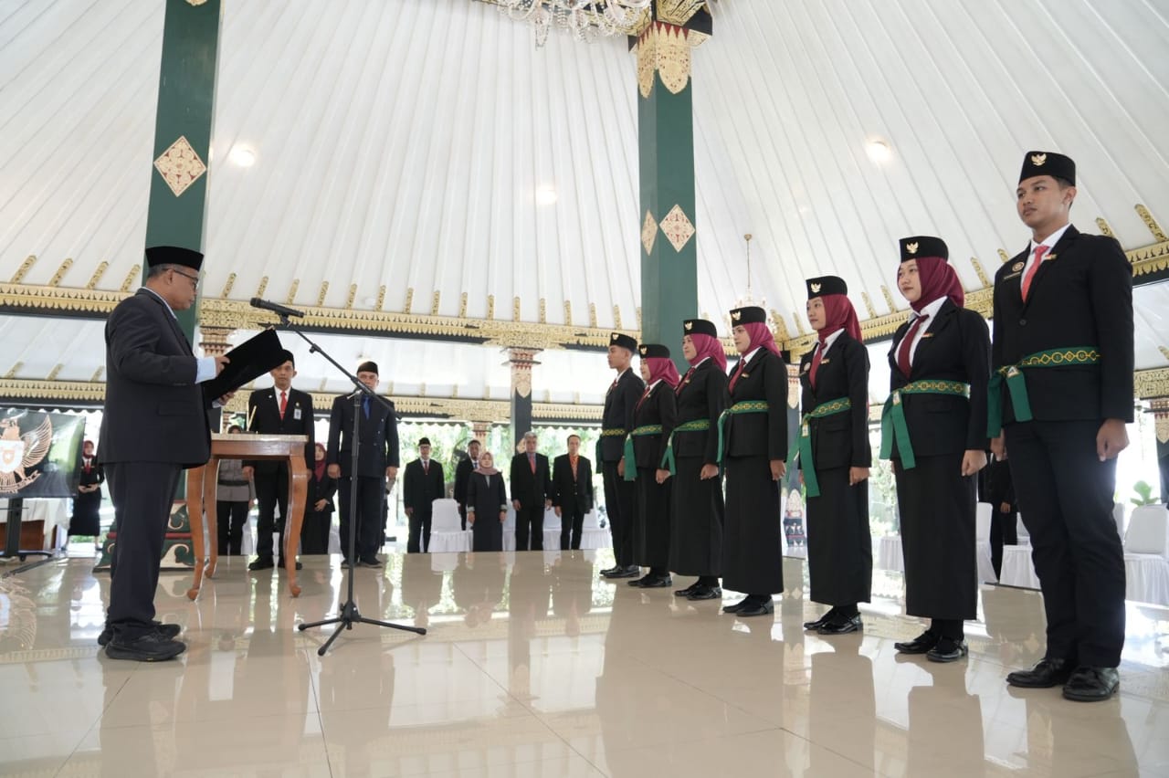 SLEMAN,Cakrawala Malut. Com– Bupati Sleman, Harda Kiswaya, melantik tujuh orang Pelaksana Duta Pancasila Paskibraka Indonesia (DPPI) tingkat Kabupaten Sleman masa bakti 2026-2030, di Pendopo Parasamya, Kompleks Sekretariat Daerah Kabupaten Sleman, Senin (16/3/2026).
